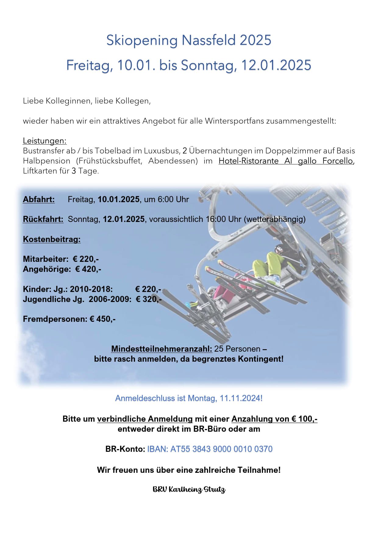 Der Schiausflug Nassfeld ist bereits ausgebucht.