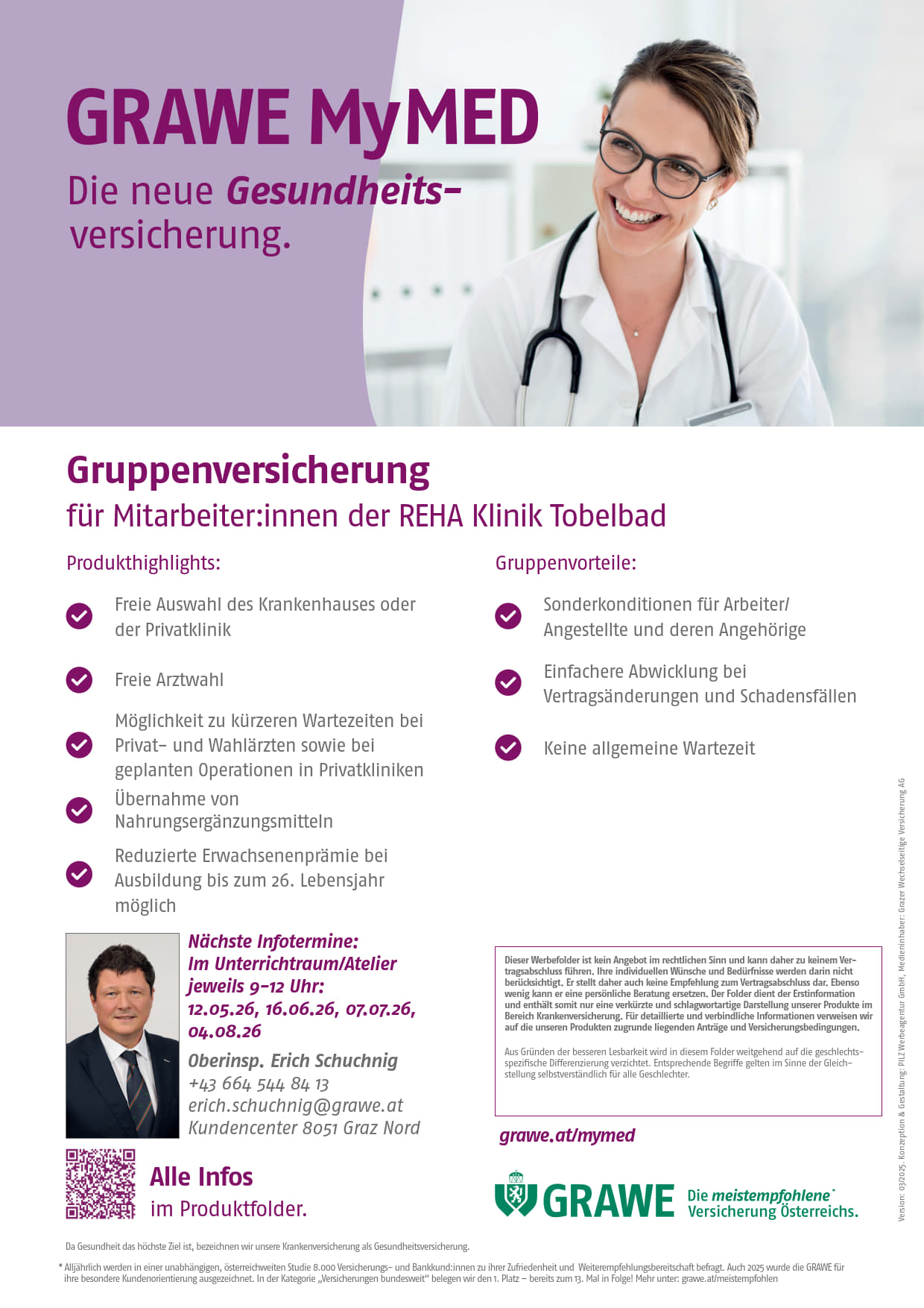 Gruppenversicherung für Mitarbeiter:innen der Rehabilitationsklinik Tobelbad.