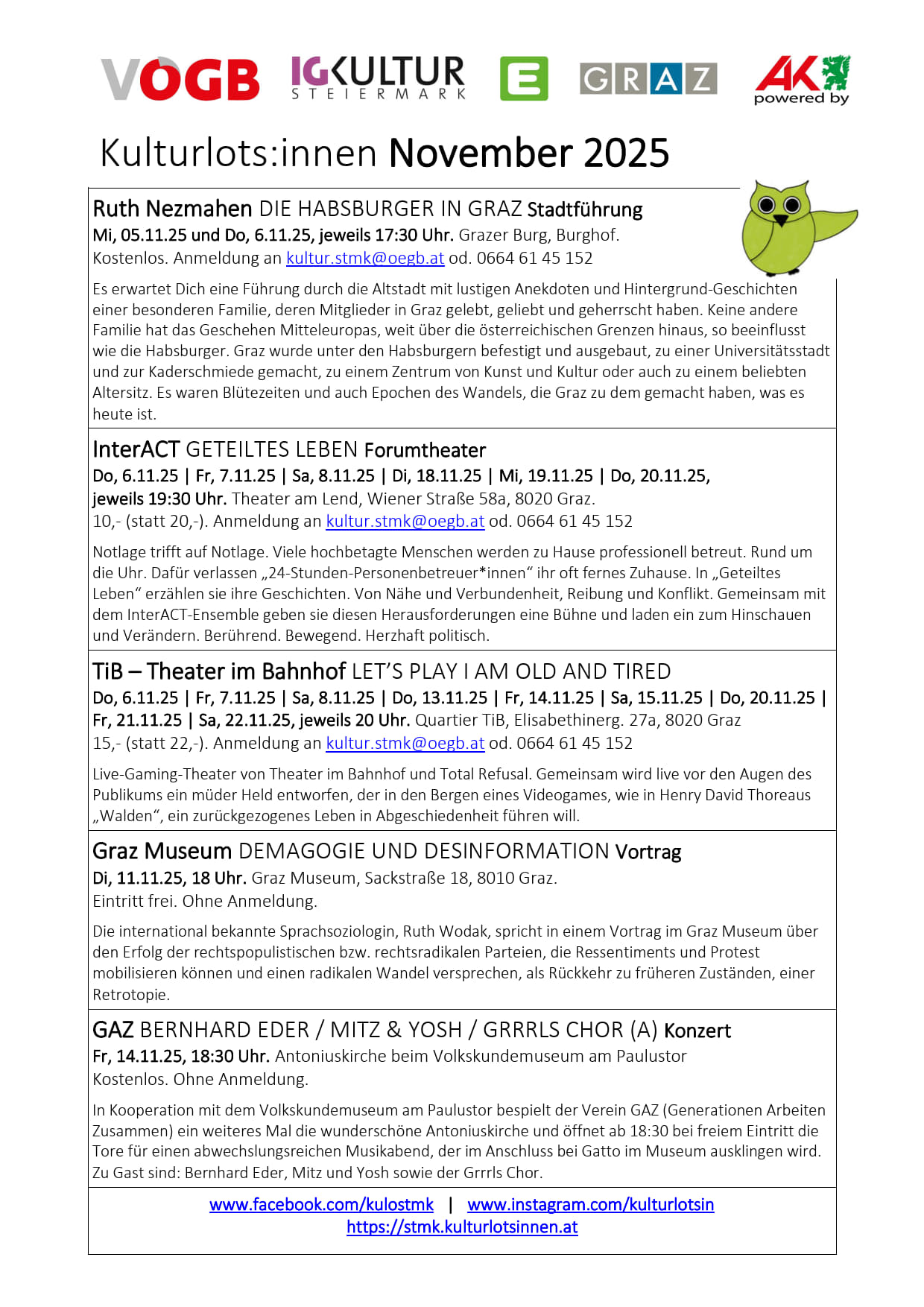 Alle Infos zur steirischen Kulturinitiative für November 2025 findet ihr im Anhang.