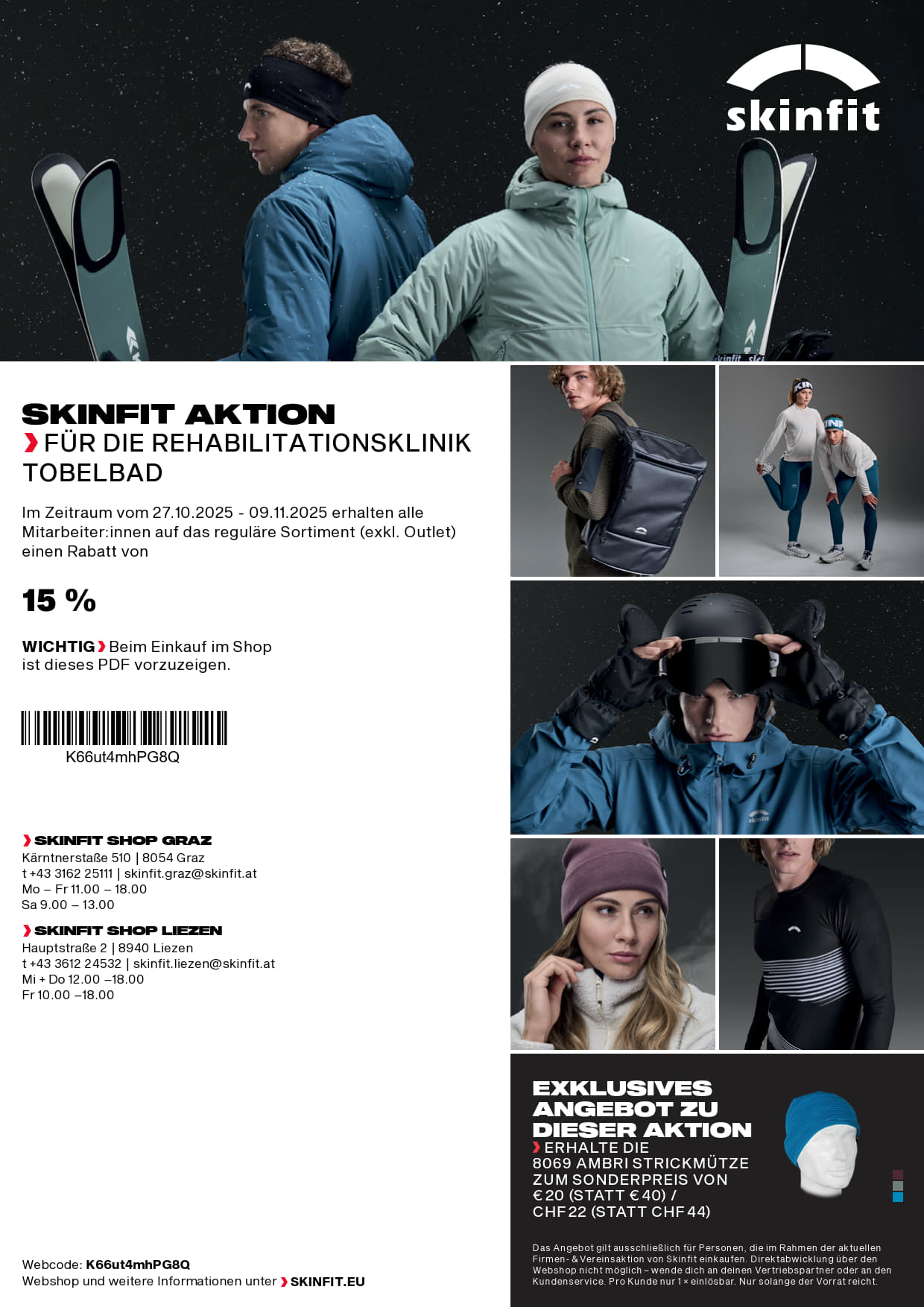 Für Mitarbeiter:innen der Rehabilitationsklinik gibt es 15 % Rabatt auf das gesamte reguläre Sortiment in den Shops.